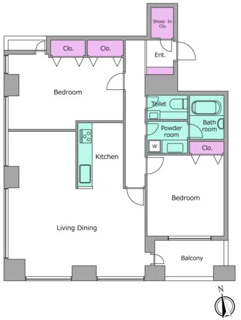 1603 2 Bedrooms 100.99m² Rent 835,000yen 2months 1month 16th floor