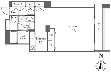 | 1511 | 1 Bedroom | 47.23m² | Rent | 255,000yen | 1month | 1month | 15th floor | |