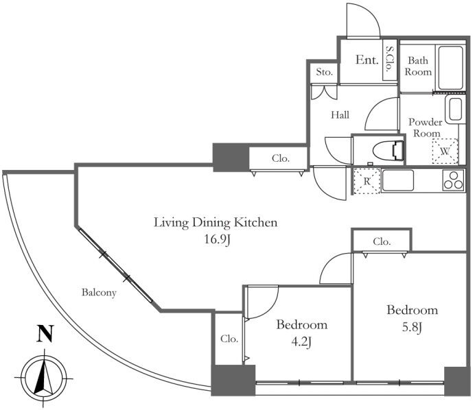| 708 | 1 Bedroom | 45.24m² | Rent | 215,000yen | 1month | 1month | 7th floor | |