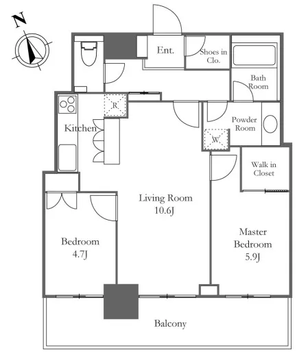 | 1502 | 2 Bedrooms | 67.22m² | Rent | 468,000yen | 2months | None | 15th floor | |