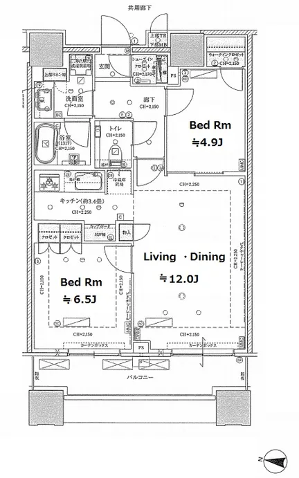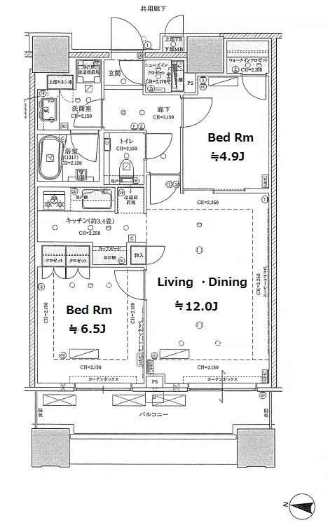 910 2 Bedrooms 68.2m² Rent 585,000yen 2months 1month 9th floor