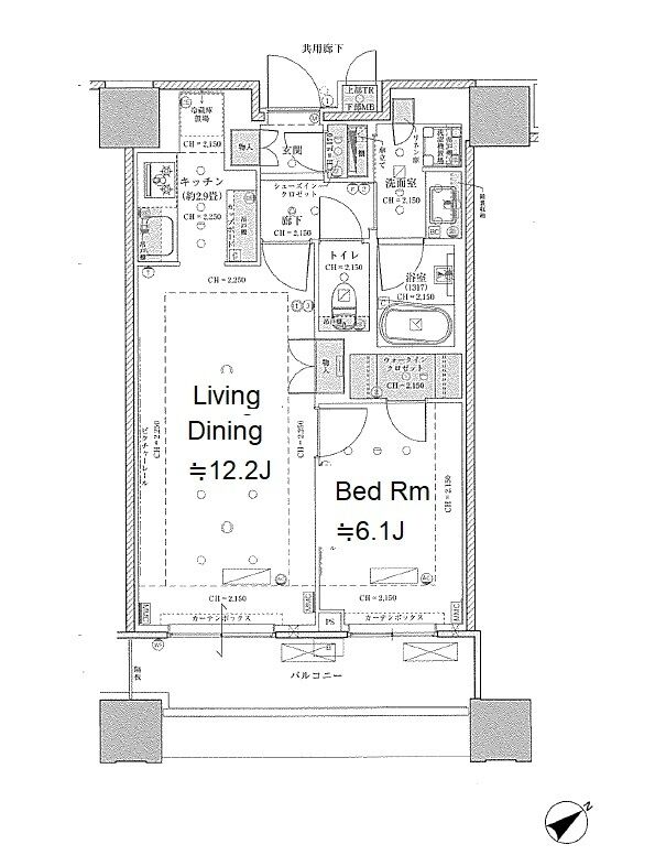 910 2 Bedrooms 68.2m² Rent 585,000yen 2months 1month 9th floor