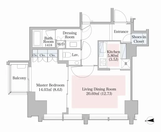 | 1102 | 1 Bedroom | 60.6m² | Rent | 450,000yen | 2months | None | 11th floor | |