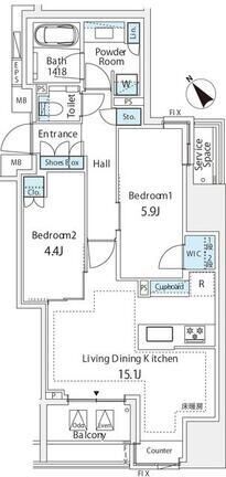| 805 | 2 Bedrooms | 62.01m² | Rent | 473,000yen | 1month | None | 8th floor | |