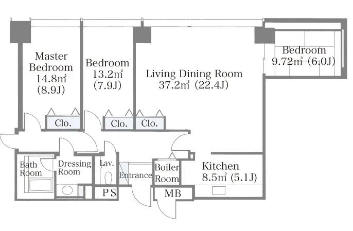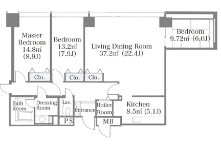 | 2207 | 3 Bedrooms | 96.47m² | Rent | 590,000yen | 2months | None | 22nd floor | |
