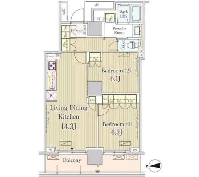 Floor Plan 2 Bedrooms +1Bath