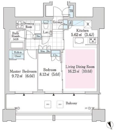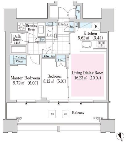 | 1602 | 2 Bedrooms | 55.69m² | Rent | 389,000yen | 2months | None | 16th floor | |