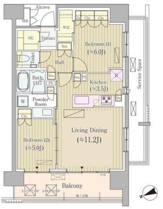 1101 2 Bedrooms 58.71m² Rent 360,000yen 1month 2months 11th floor