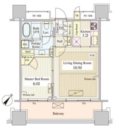 3202 2 Bedrooms 61.26m² Rent 480,000yen 1month None 32nd floor