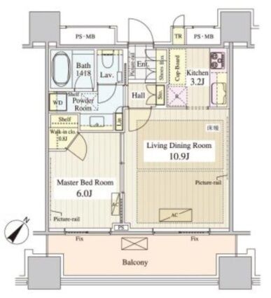 1213 1 Bedroom 45.97m² Rent 360,000yen 1month 1month 12th floor