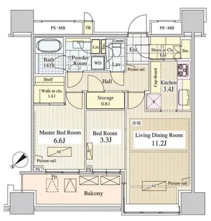 Features Flooring、Heated floor、Front Desk、Dishwasher、A/C、BS、CS、Fiber optic、Internet、Auto-lock、Delivery Box、Storage、Bicycle-parking、Balcony、No pets、High rise