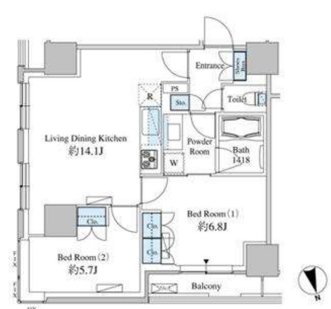 | 2203 | 2 Bedrooms | 59.82m² | Rent | 338,000yen | 1month | None | 22nd floor | |