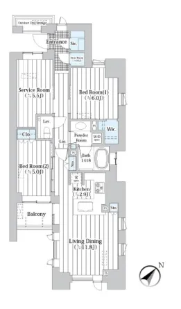 | Floor Plan | 2 Bedrooms +1Bath +1Study room |
