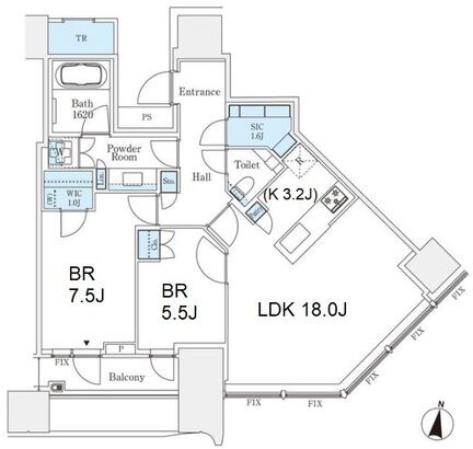 1613 2 Bedrooms 74.46m² Rent 640,000yen 1month 1month 16th floor