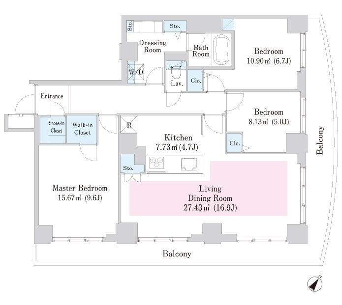 106 2 Bedrooms 85.98m² Rent 599,000yen 2months None 10th floor