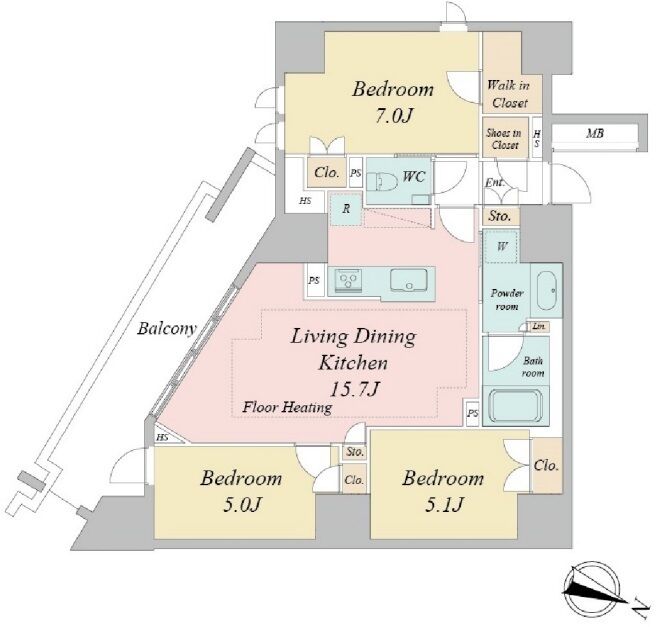 | 401 | 3 Bedrooms | 76.03m² | Rent | 505,000yen | 1month | 1month | 4th floor | |