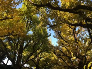 Meiji Jingu Outer Garden Located in the north between Aoyama-Itchome Station and Gaienmae Station. One of the famous spots in this garden is called Ginkgo Avenue. Every autumn, they show beautiful yellow leaves along the avenue. There is a baseball field which is the home ground of professional baseball team Yakult Swallows. Tennis court, golfing range, ice skating rink etc. are available for a small fee. Jingu Gaien Festival is also popular where you can enjoy 10,000 shots of fireworks during August. MAP
