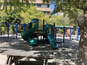 Tsukishima Daiichi Jido Koen  Located by Tsukishima station with a great variety of playground equipment for children.